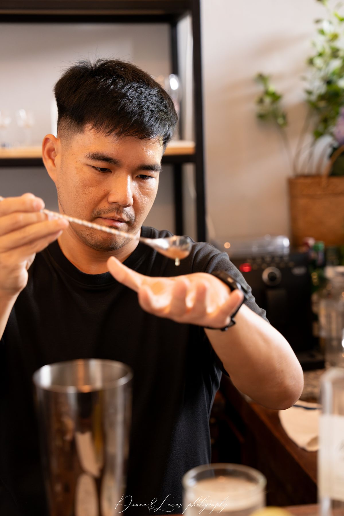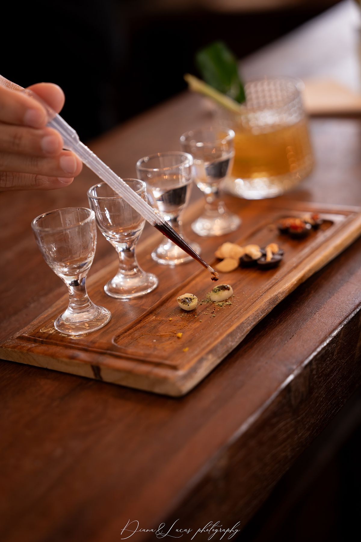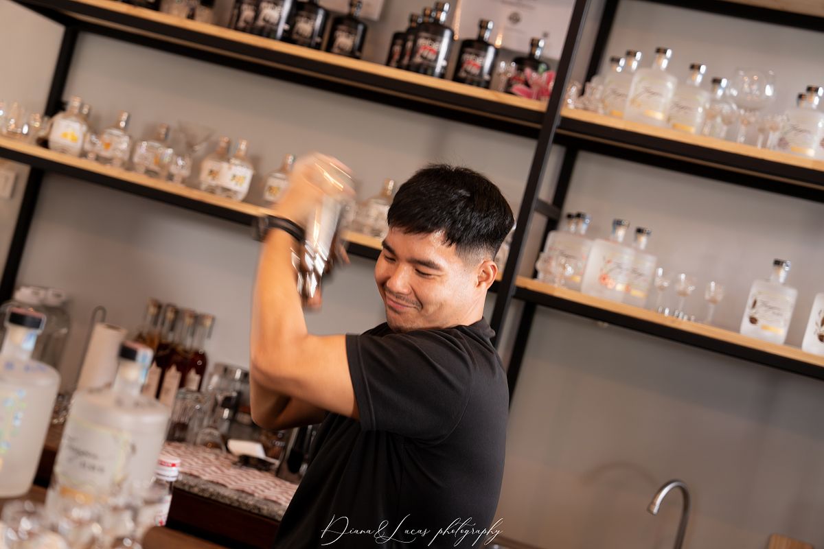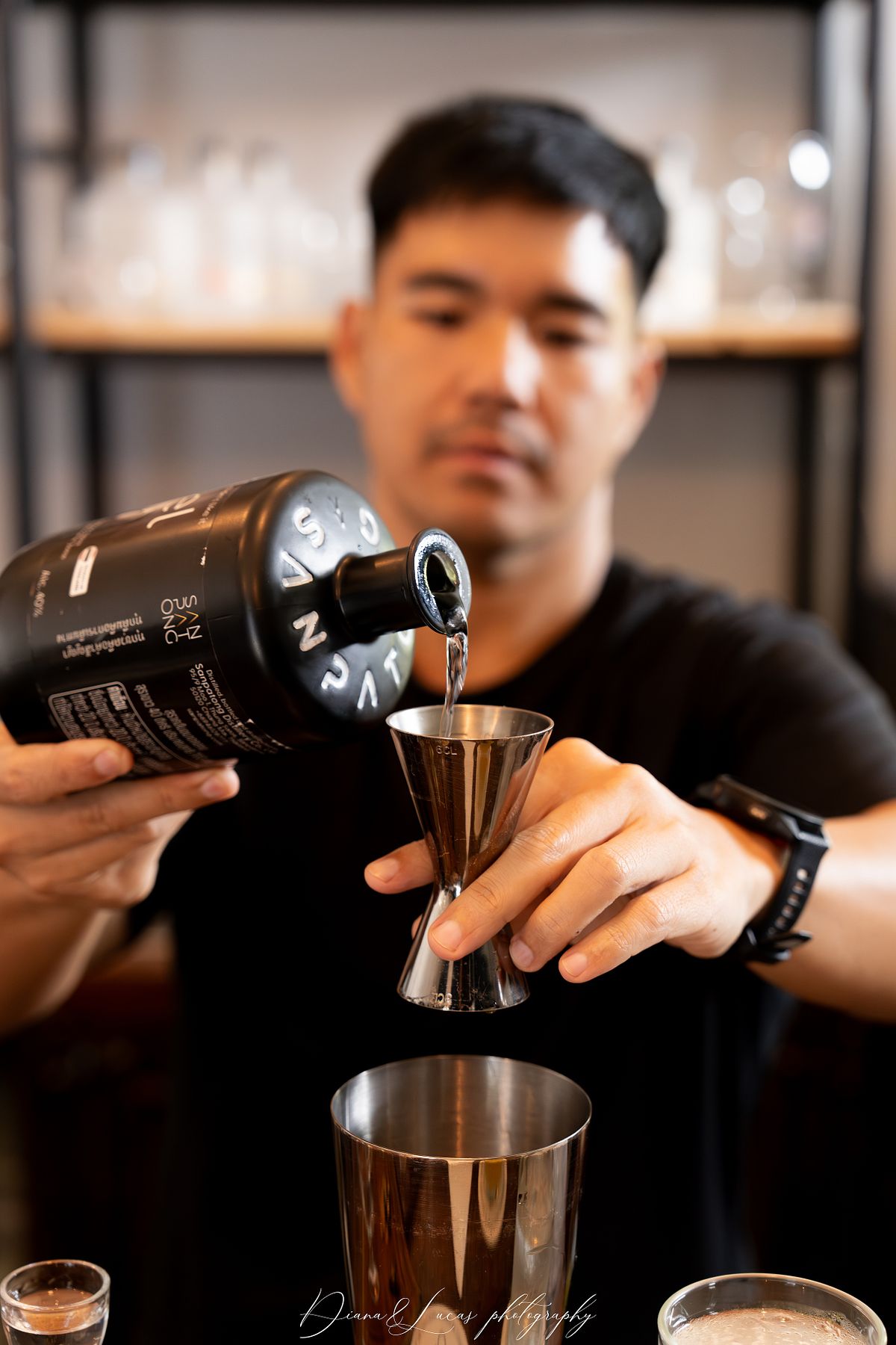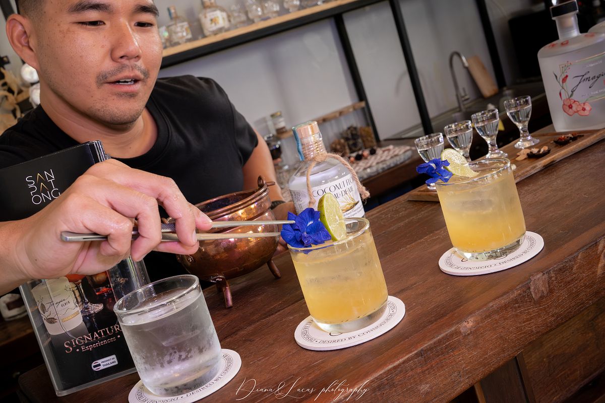 We chose Sanpatong because the space has a distinct character shaped by its colors, materials, and design. We wanted to show how glass bottles, spirit-tasting glasses, the wooden bar, and the steel installations come together here, and how these elements create a look that feels both modern and warm in our photos. All of this helps us bring out a unique and natural color grading.