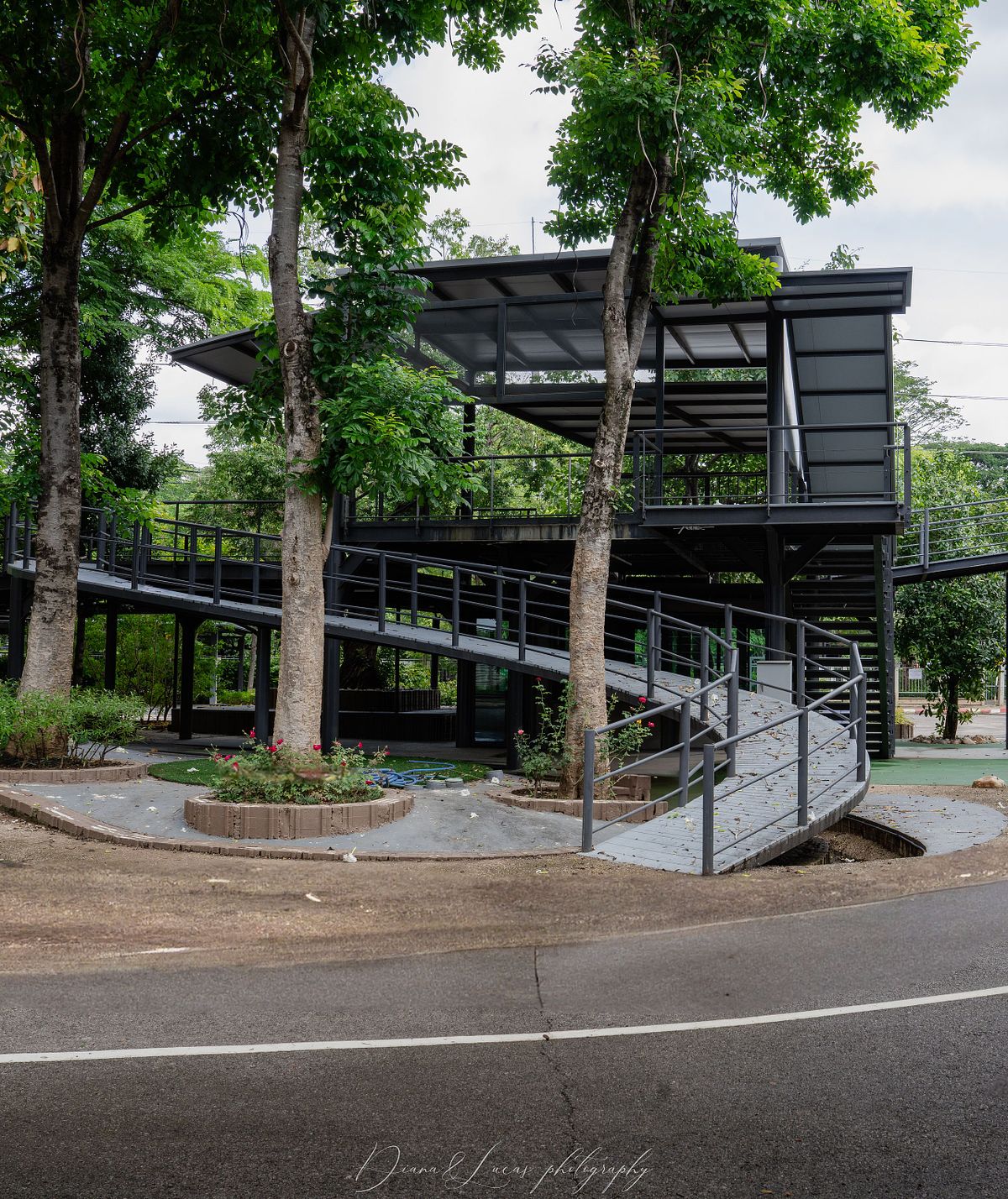 This park is full of lush green scenery woven together with impressive steel structures, all connected by winding paths. It is a rare pocket of nature in the middle of the city, and that mix of design and greenery is what drew us to photograph this place.